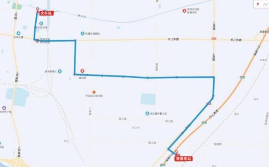 线路走向:公交集团一分公司—泰山路—人民路—珠江东路—G220—规划路—菏泽东站