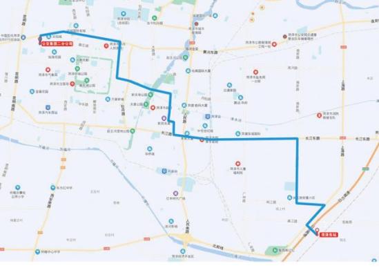 线路走向:百货大市场(西客站)—中山路—西安路—长江路—牡丹南路—漓江路—规划路—菏泽东站