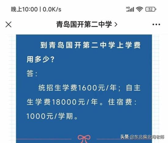 遥想以前莱西还没有国开二中的时候,儿子中考那年普高一共录取了3800人,一中加实验3200,二中600。其中一中和实验的3200人中包含了500名自费生,收费标准为一年16000~18000;二中的600人中有自费生100人,每年11000~13000。
