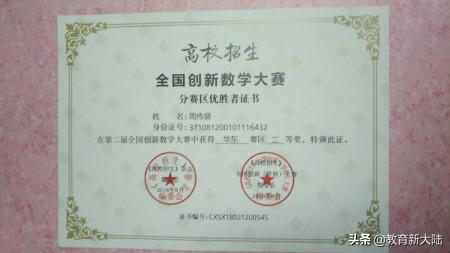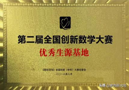 《高校招生》杂志与全国中学生创新数学大赛组委会授予学校“全国中学生创新数学大赛 优秀生源基地”;