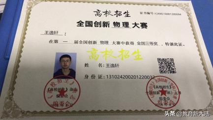 《高校招生》杂志与全国中学生创新物理大赛组委会授予学校“全国中学生创新物理大赛 优秀生源基地”;