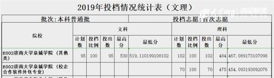 济南大学泉城学院(其他类)投档分数:文科最高分530分,文科最低分519.110199108102分;理科最高分484分,理科最低分467.089173107098分。