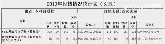 烟台南山学院(其他类)投档分数:文科最高分531分,文科最低分513.107193098115分;理科最高分511分,理科最低分459.099168114078分。