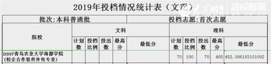 青岛农业大学海都学院(校企合作软件外包专业)投档分数:理科最高分465份,最低分452.086183101082。