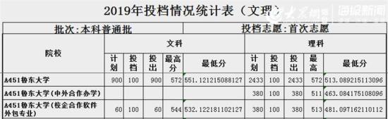 鲁东大学(校企合作软件外包专业)投档分数:文科最高分:544分,文科最低分532.122181102127分;理科最高分513分,理科最低分481.097162110112分。