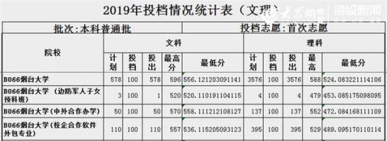 大众网·海报新闻烟台7月19日讯 (记者 蔡云飞 见习记者 林晨 实习生 欧阳瑞红) 7月18日,山东省教育招生考试院发布“2019年投档情况统计表本科普通批首次志愿”。记者从中了解到,驻烟高校最高、最低投档分已出炉。具体录取情况还未公布。(以下按院校代号排列)