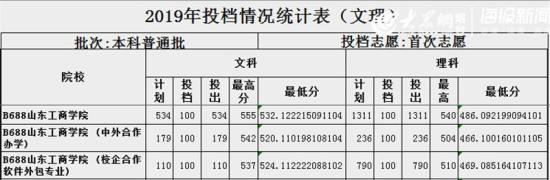 山东工商学院 (校企合作软件外包专业)投档分数:文科最高分:537分,文科最低分524.112222088102分;理科最高分510分,理科最低分469.085164107113分。