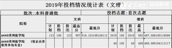 滨州医学院普通本科投档分数:文科最高分557分,文科最低分519.103195109112分;理科最高分592分,理科最低分:467.096160115096分。