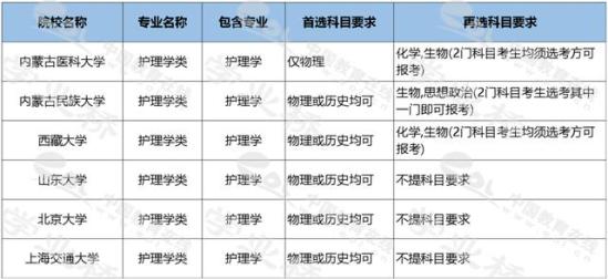 在3 1 2模式下,大部分院校的护理学类专业对首选科目无要求,少数院校要求首选科目必须为物理,如内蒙古医科大学等。
