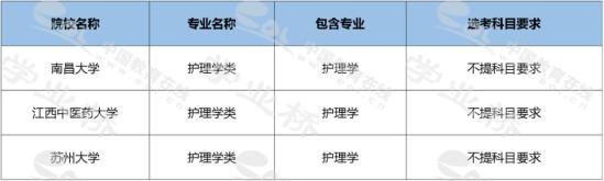 2020年海南等地采用3 3选科模式,在该模式下,大部分院校的护理学类专业不提选考科目要求,如南昌大学、江西中医药大学、苏州大学等。