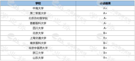 在第四轮学科评估中,护理学学科被评为A 、A-、B 的学校如下。