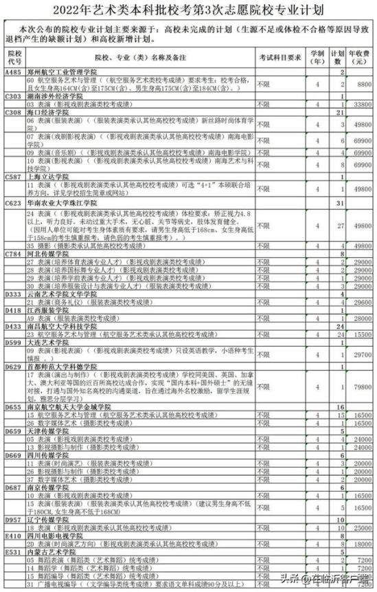 2022年艺术类本科批联考第3次志愿院校专业计划
