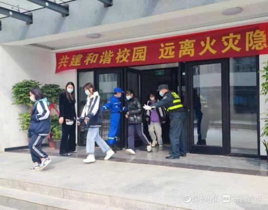 学校老师、宿管员、保安以及枣庄蓝天救援队9名队员分别在楼道内、楼梯口、出口处指挥疏导学生安全有序“逃生”。枣庄蓝天救援队王伟队长告诉学生们,遇到相关情况大家不要恐慌,不要拥挤,要在老师或者宿管员的带领下,用湿毛巾或衣袖遮住口鼻,同时要低身前行,这样可以避免吸入浓烟,并迅速疏散撤离到安全地带。