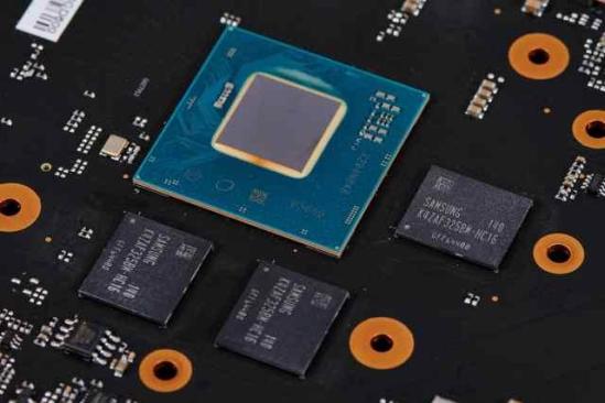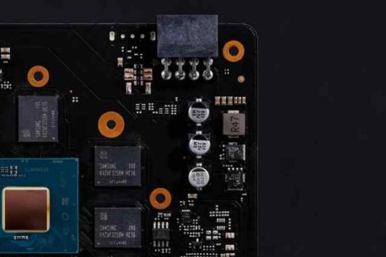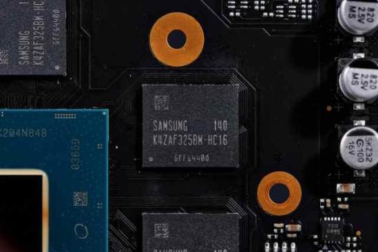 GPU核心的上、右两边则是三颗显存颗粒,来自三星的HC16规格GDDR6显存颗粒,三颗组成了6G/96Bit规格。而HC16后缀也表明显存颗粒的速度为16Gbps,而A380上运行15.5Gbps显得有些保守了。