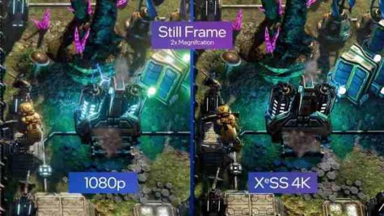 当然XeSS的优势就在于,与自家的英特尔锐炫显卡相结合,能够利用显卡上的英特尔XeMatrixExtension(英特尔XMX)引擎进行AI硬件加速运算。目前测试时来看,游戏里仍未能支持XeSS,相信随着游戏版本不断更新,就可以支持此项技术。