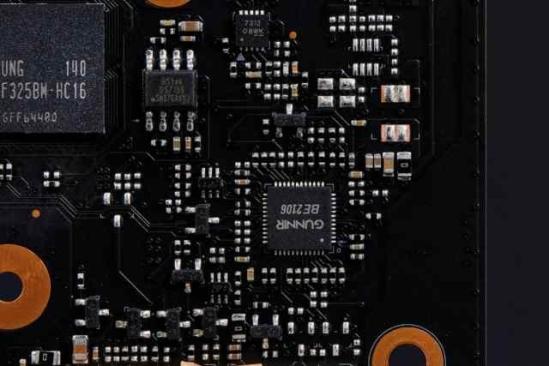 GUNNIR标识的定制芯片,控制显卡上GUNNIRLOGO发光灯效。