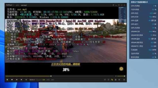 PotPlayer上播放的就是我们利用英特尔锐炫控制面板中录制的4K@30AV1编码视频,右侧的是遥测叠加界面,可看到英特尔锐炫A380显卡在硬解AV1视频时的情况,GPU温度仅为48度,频率为750MHz,而功耗仅是19W,自家录制的自家播放资源占用就是低。